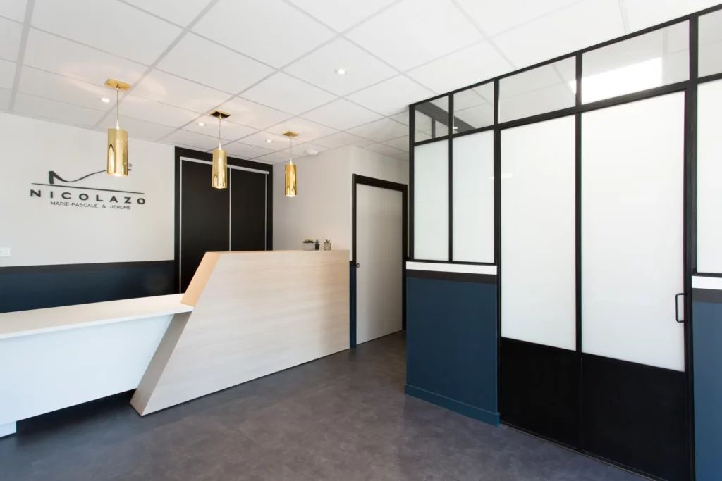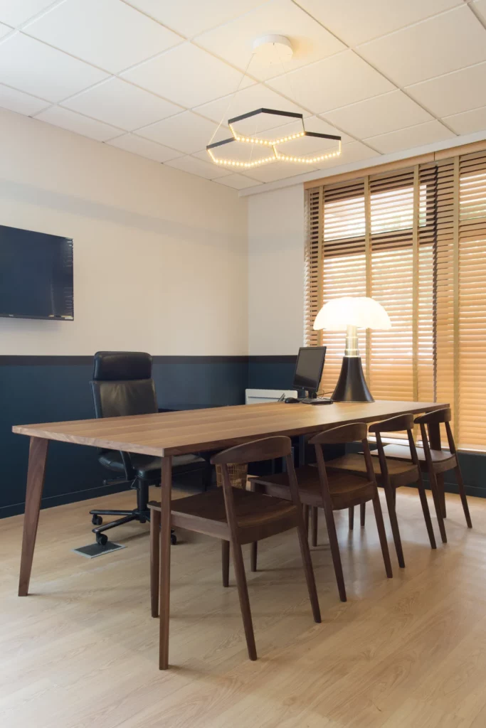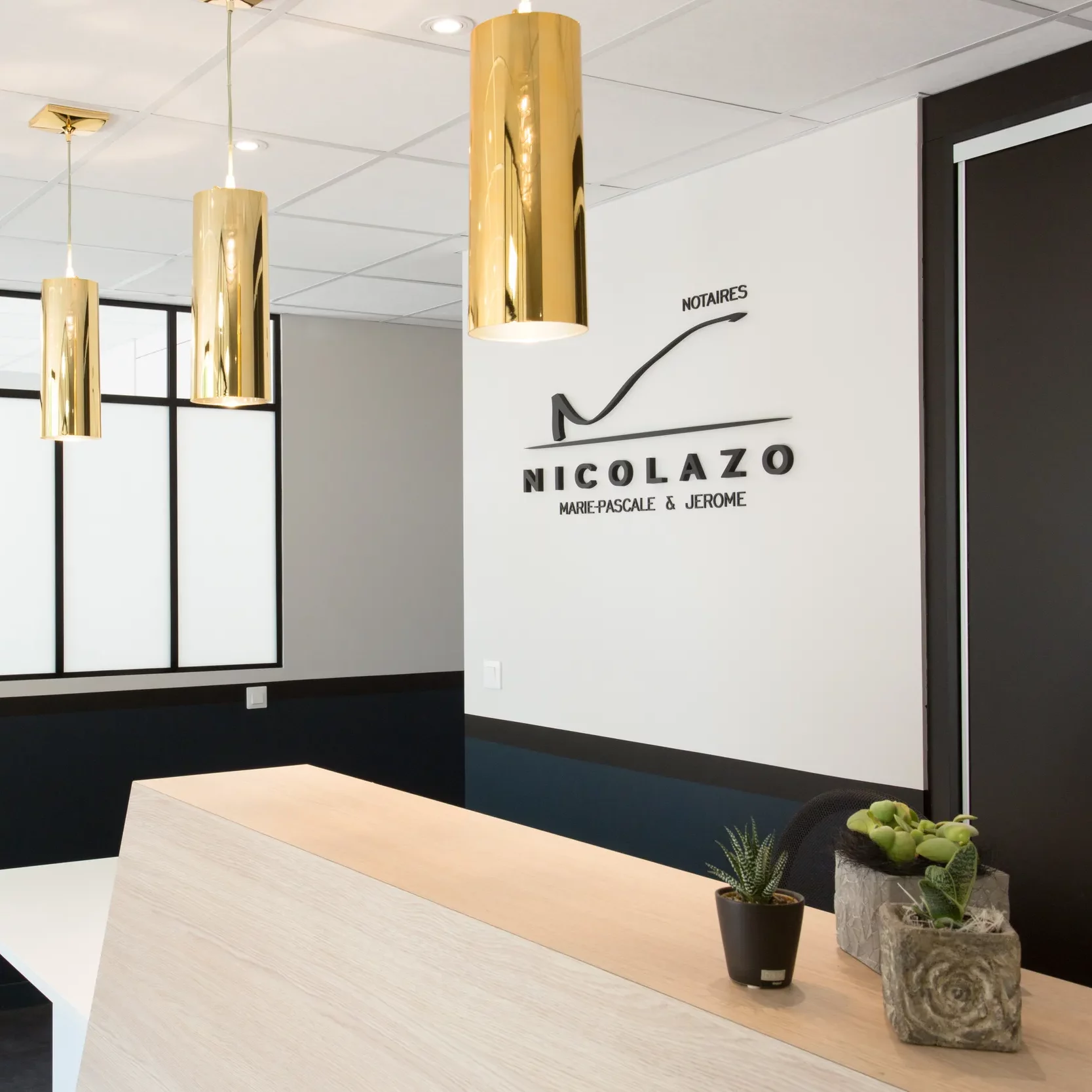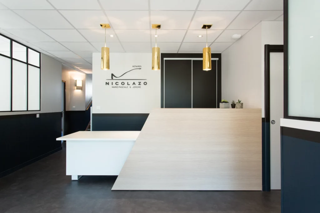 Le souhait des notaires était de réaliser des bureaux chics, esthétiques, dans lesquels on puisse se sentir « comme à la maison », sans pour autant y appliquer un style trop ostentatoire, ni porter les codes d’une étude notariale traditionnelle. La clientèle étant principalement familiale, il était important de respecter l’esprit de confiance et de sobriété qui règne dans cette étude.