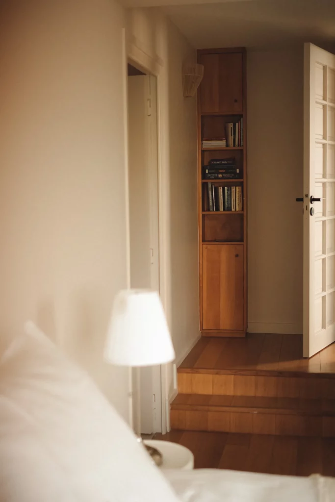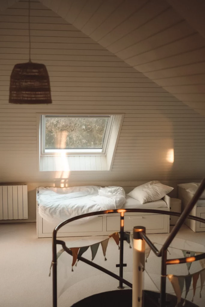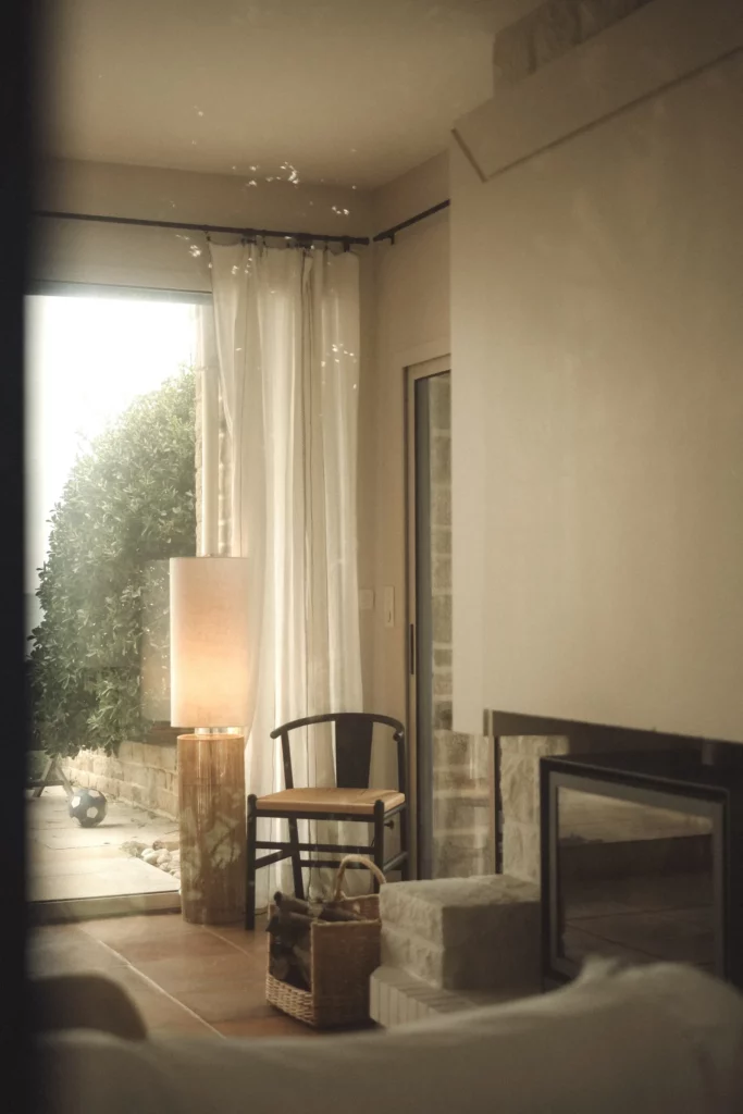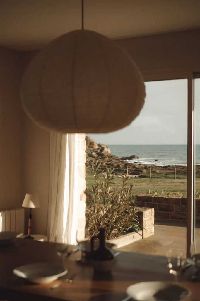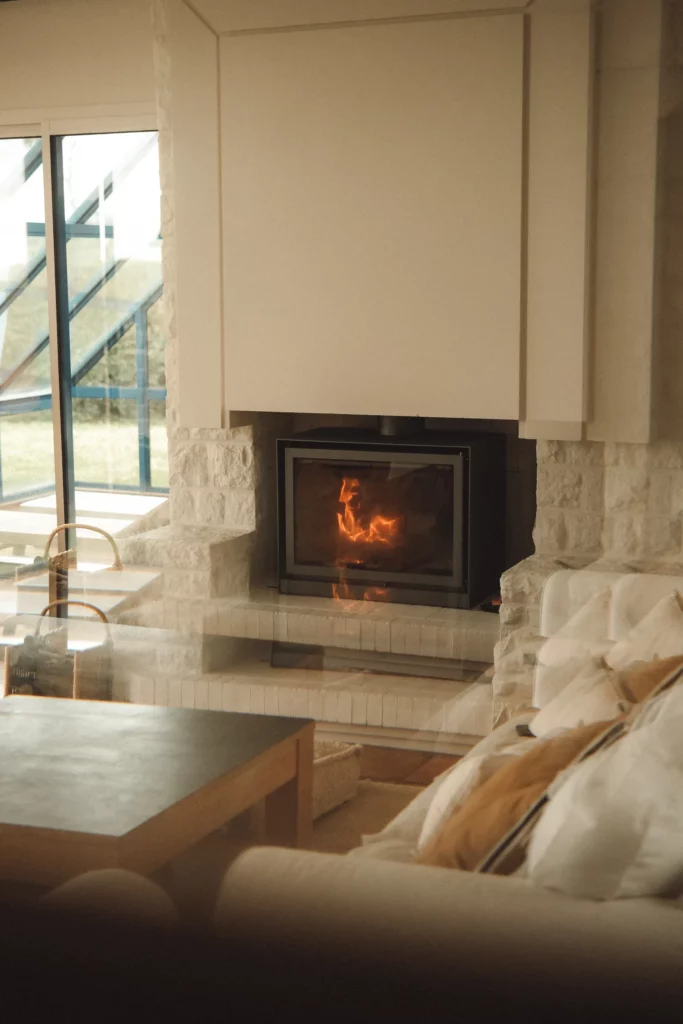Pensé autour du paysage, le projet met en valeur une vue mer omniprésente. Les fenêtres, conçues comme des tableaux, cadrent l’horizon et rythment les espaces de vie. Au cœur du salon, la cheminée devient un élément central, structurant et chaleureux, tandis qu’un espace piano se transforme en coin lecture intimiste, propice à la détente.