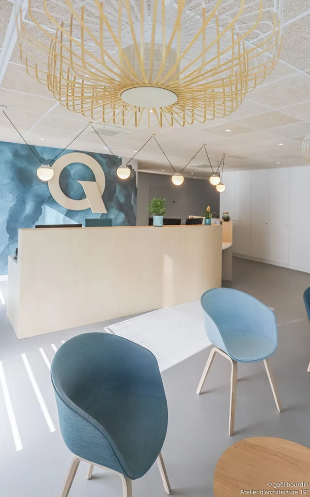 Pour regrouper ses équipes, la société de géomètres QUARTA a « poussé les murs » de ses bureaux en investissant le rez-de-chaussée de l’immeuble qu’elle occupait déjà en partie. Il convenait donc non seulement d’aménager un étage pour les collaborateurs mais de concevoir également un nouvel accueil, les circulations ainsi que les lieux de vie de l’ensemble des salariés.