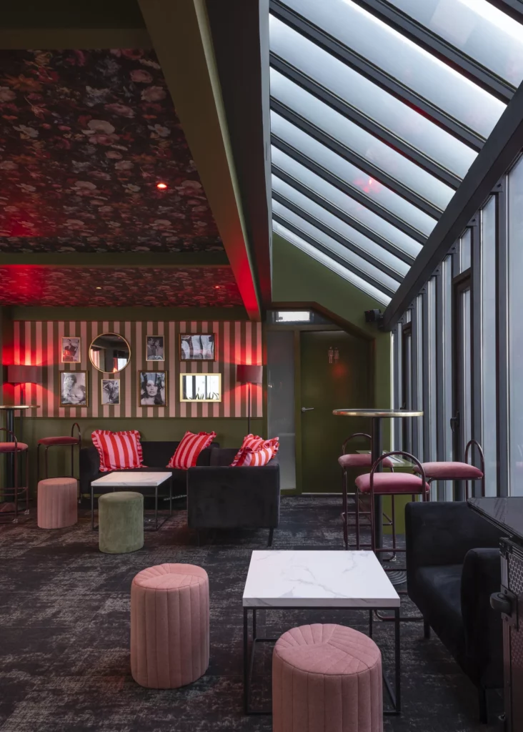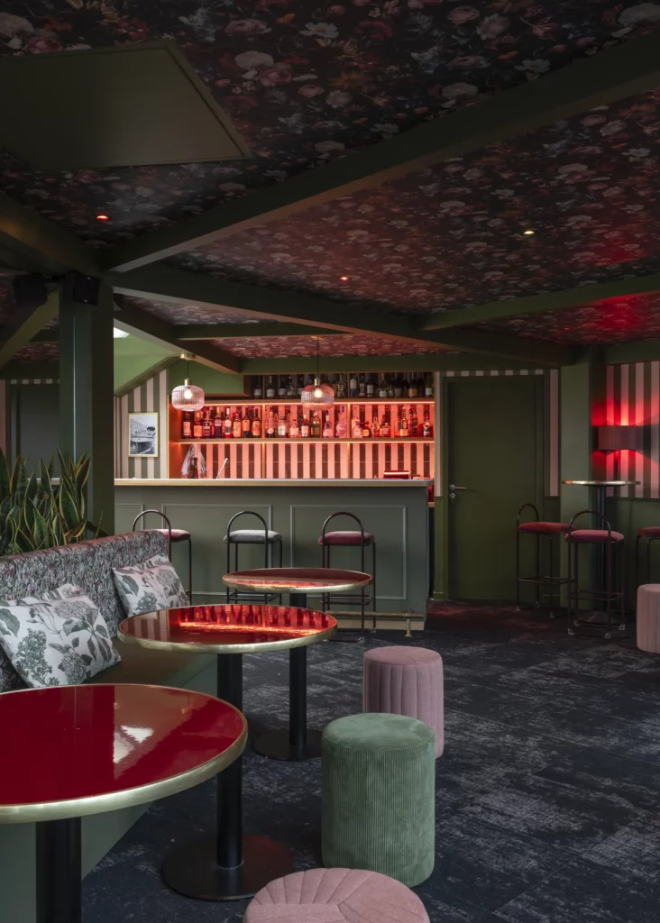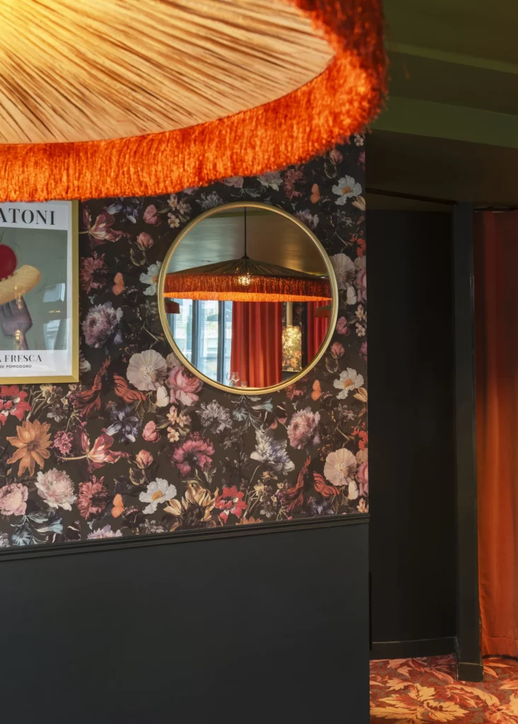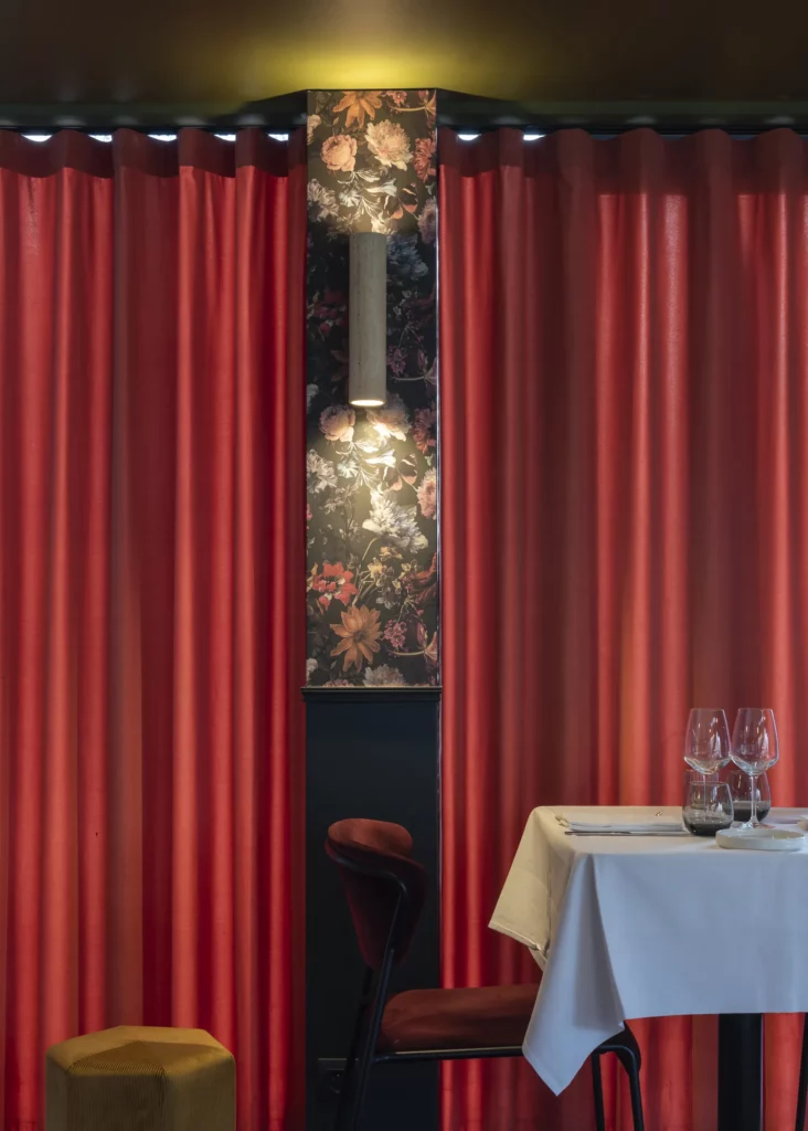 L’ambiance associe le raffinement du style rococo à des touches contemporaines et lumineuses, créant une atmosphère singulière entre tradition et modernité.